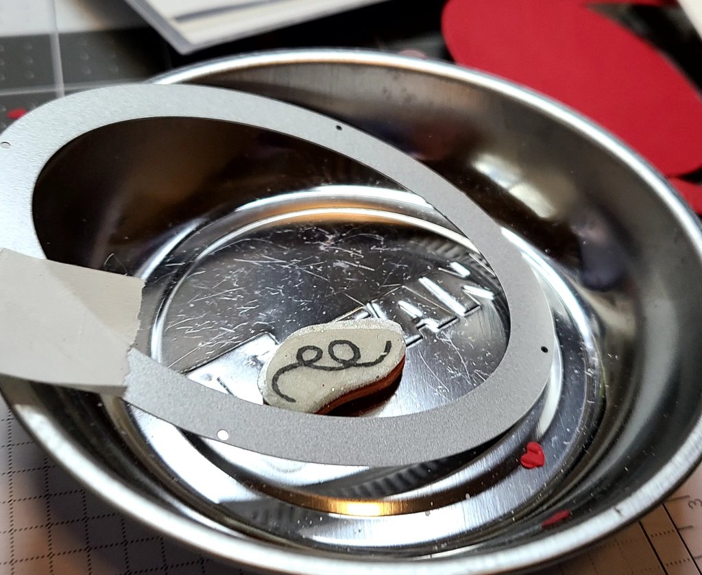 First, get yourself a Titan magnetic bowl or tray. You can purchase them on Amazon HERE. That is only the small bowl, but I love this larger tray HERE. When working with your dies, put them in your bowl or tray rather than lying on your table. They stay in the bowl/tray because of magnets. You will be able to find them easily when ready to put them away!